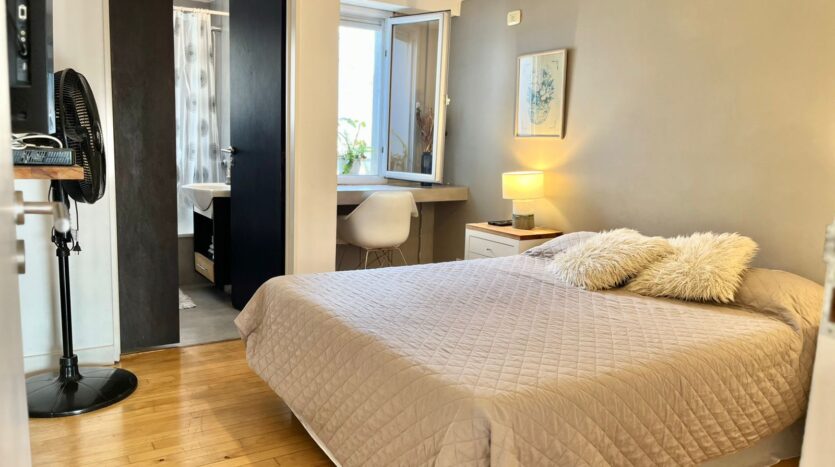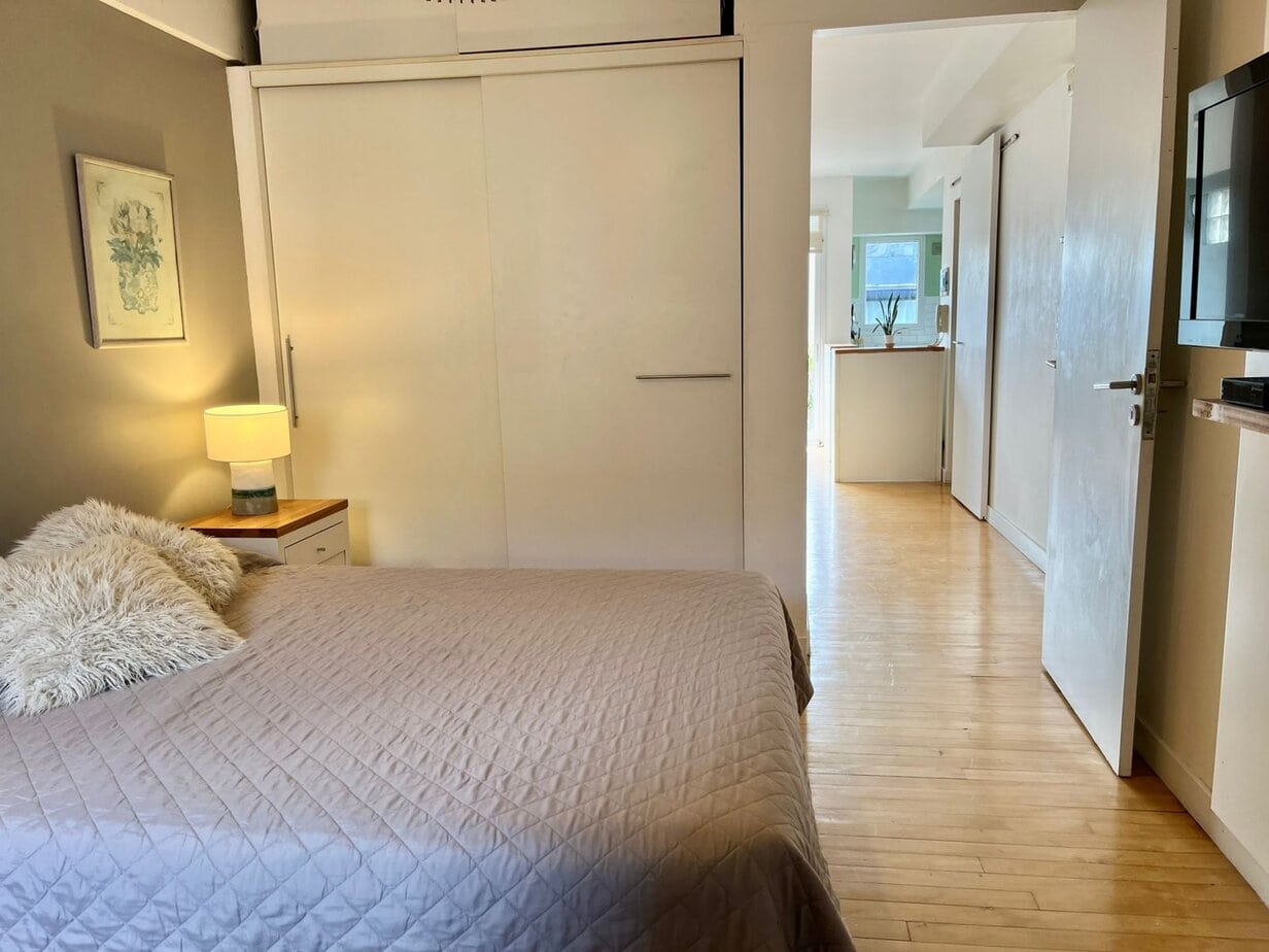 El dormitorio tiene una cama tamaño queen Encontrará un montón de espacio para guardarropas lo que lo hace perfecto si está buscando alquilar por un período prolongado.