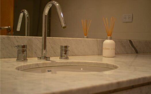 Los detalles del baño son de mármol, los pisos del apartamento de roble americano, una cocina completa con su propia lavadora.