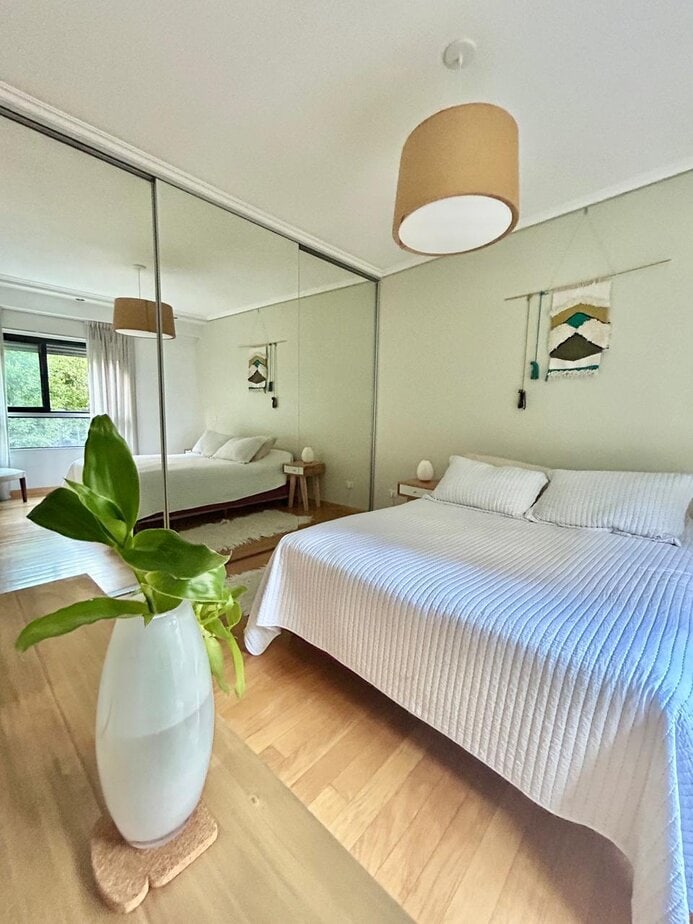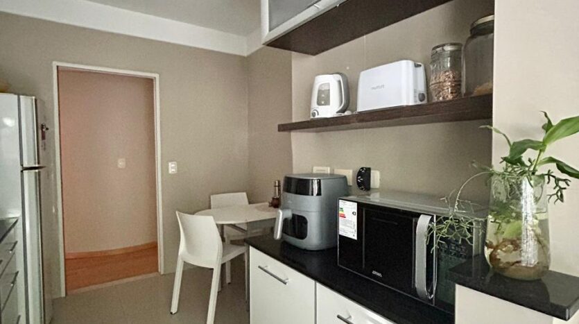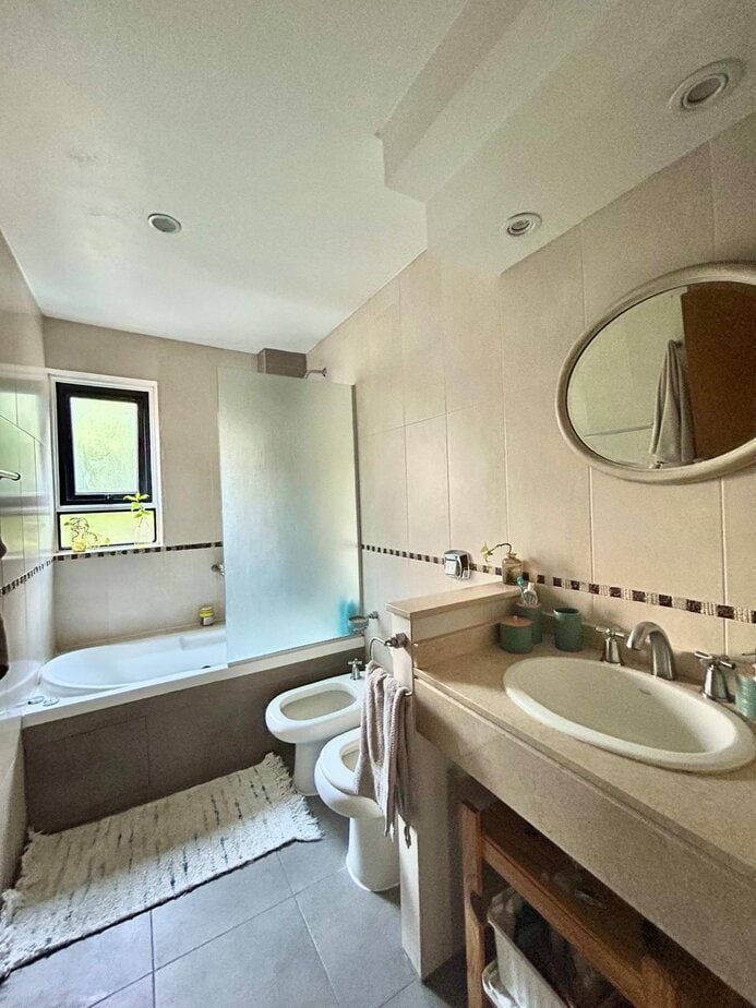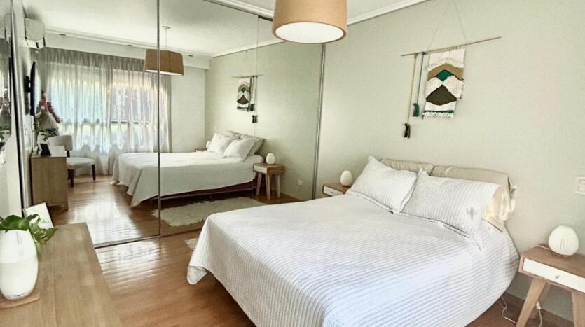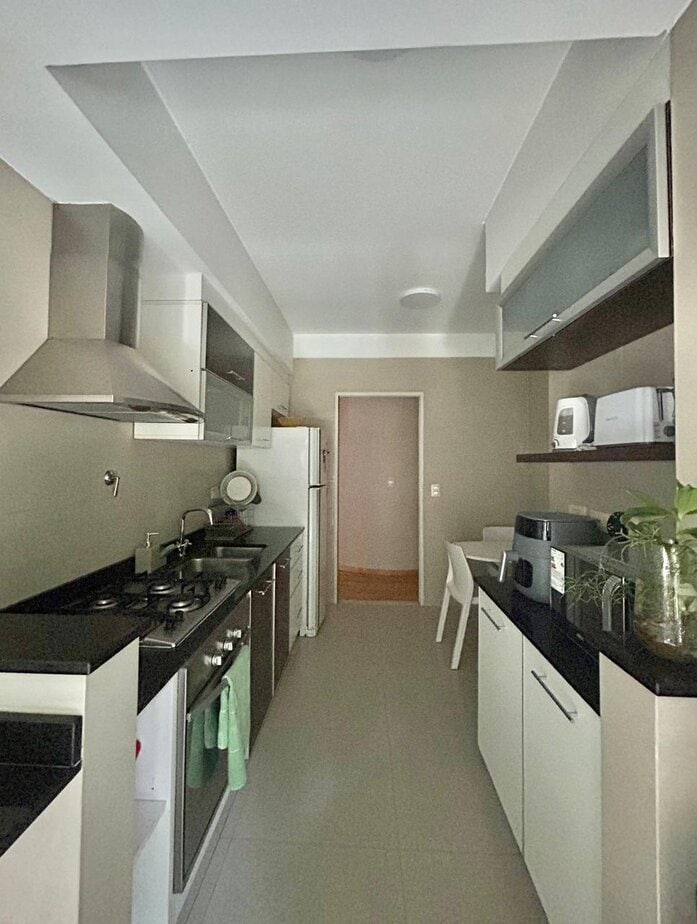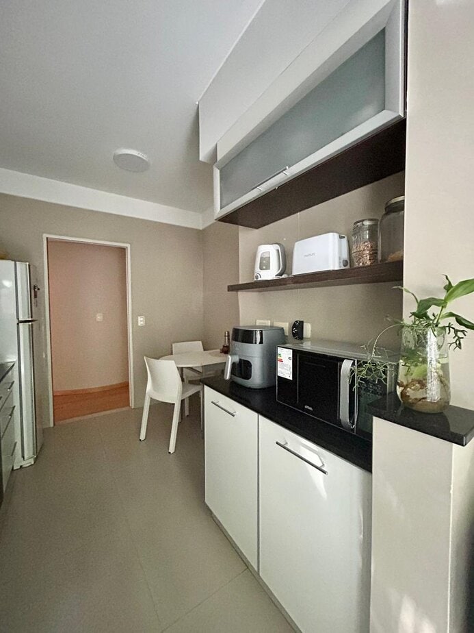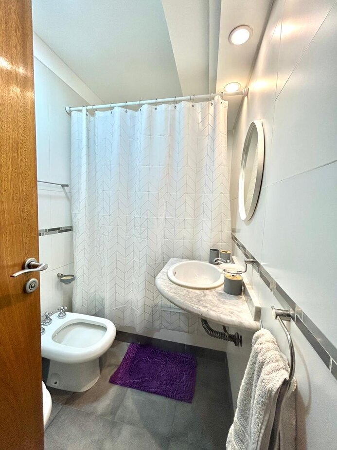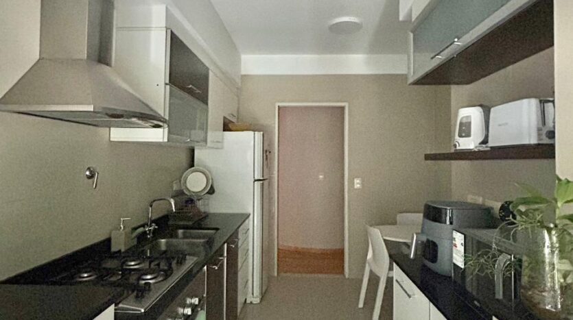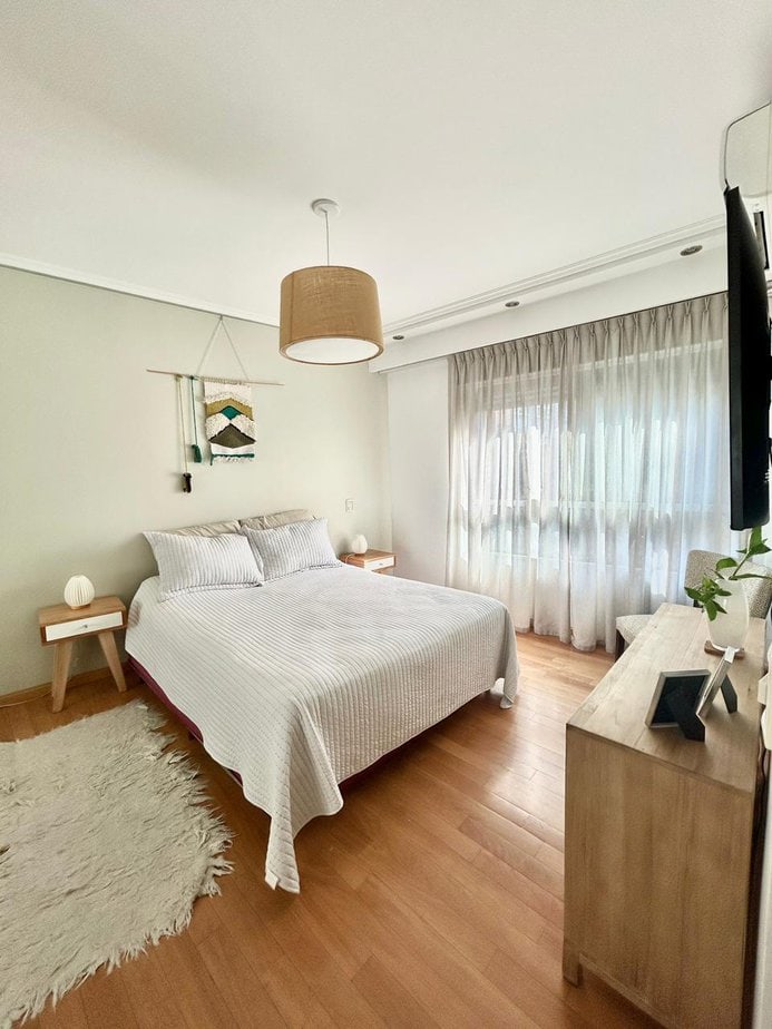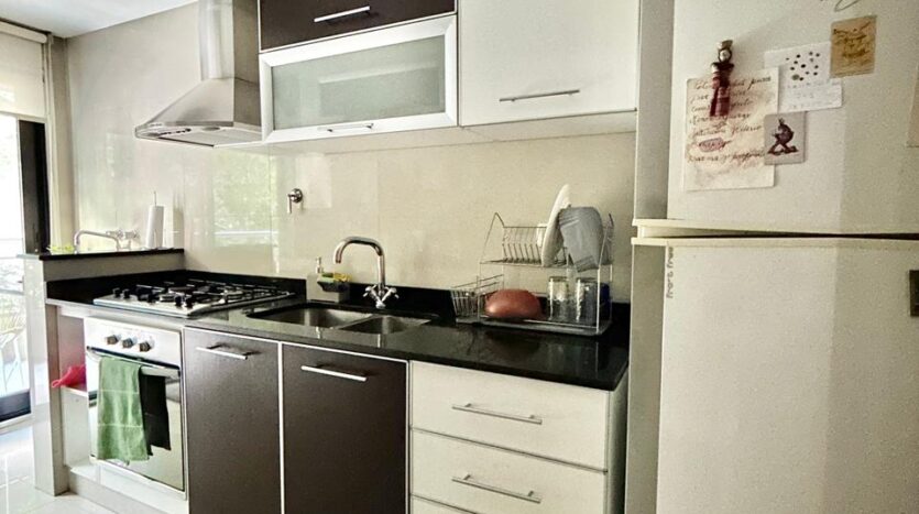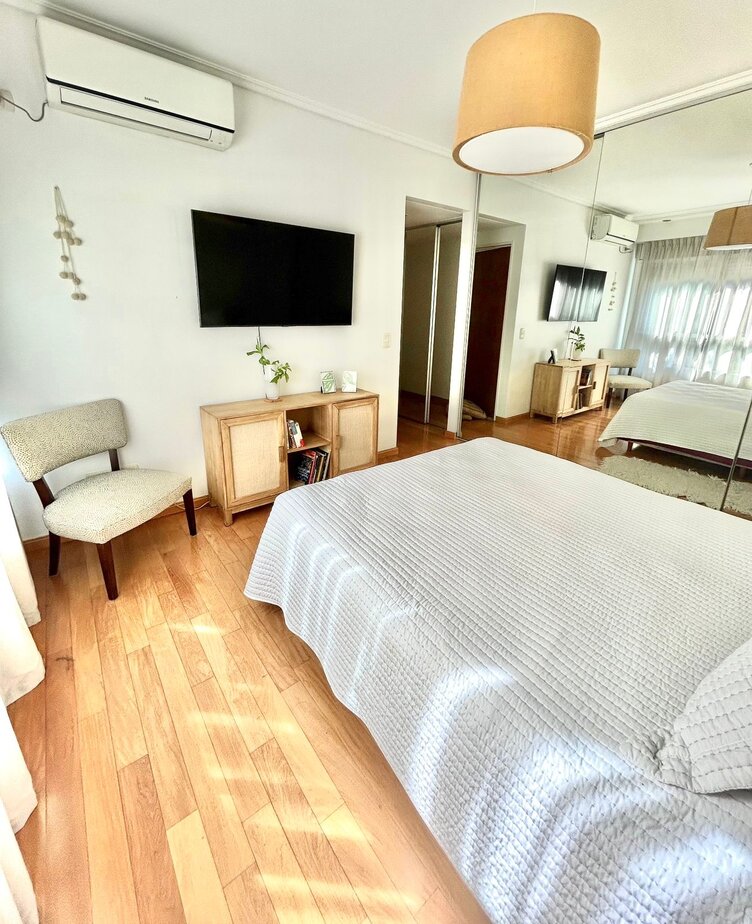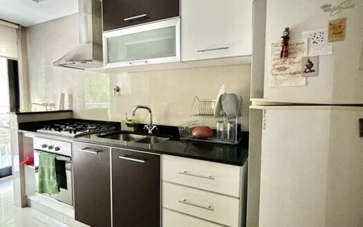 2 dormitorios (principal con baño en suite y secundario), 2 baños completos (con ducha), Cocina independiente totalmente amoblada, Living independiente, Balcón, 2 aires acondicionados, TV 32” y Lavarropas.