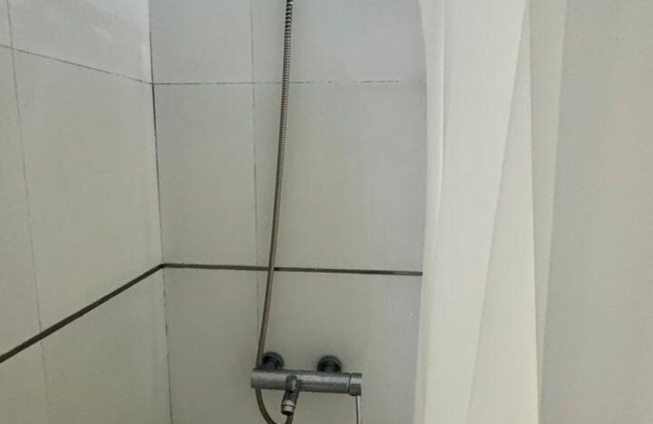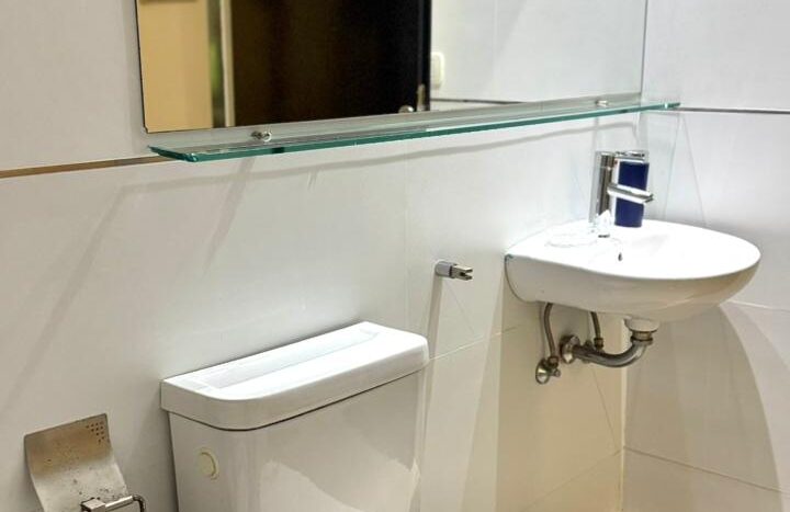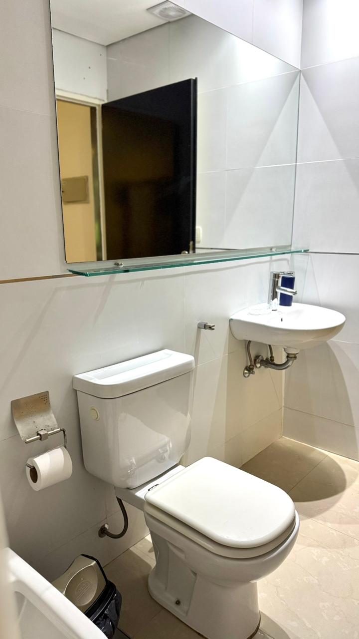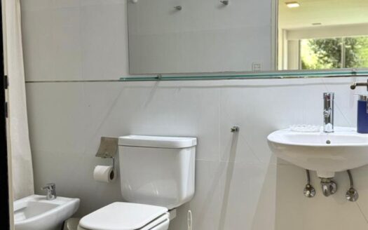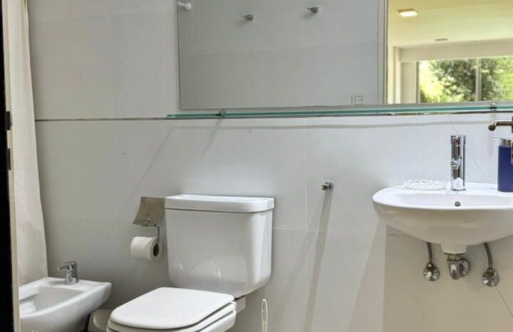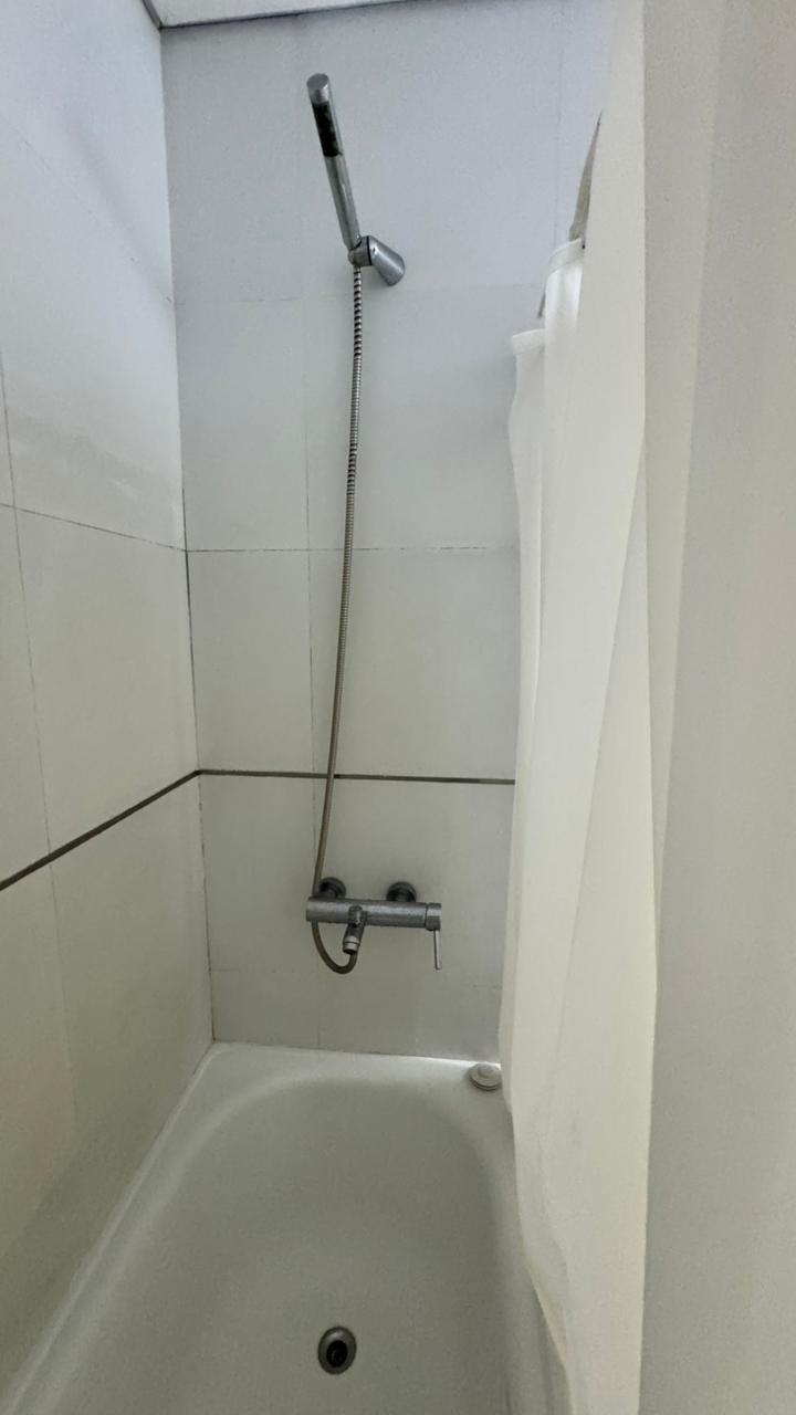 Baño completo y el departamento tiene un lindo balcón con mesa y 2 sillas!