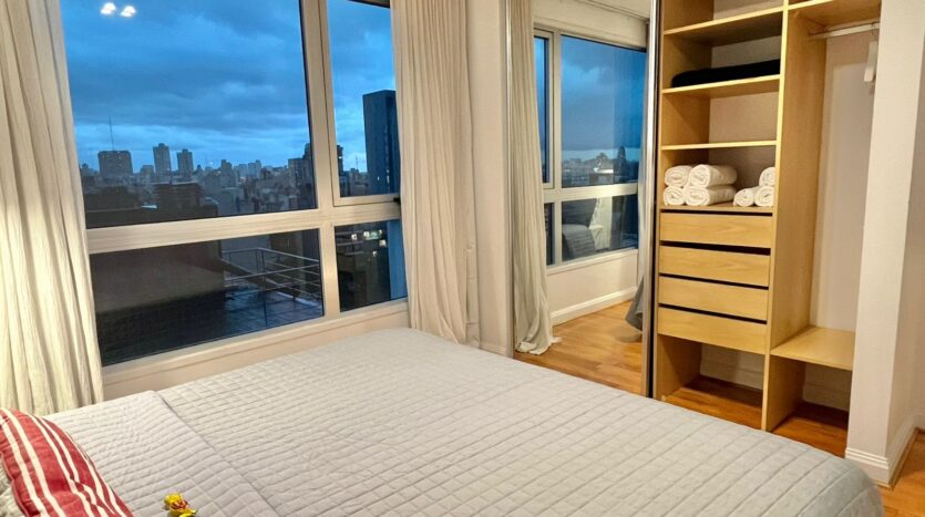 Se compone de dos torres enfrentadas a través de un área central del parque. El departamento está en el piso 11 por lo que es tranquilo, tiene mucha luz y tiene buenas vistas sobre el horizonte del Soho.
