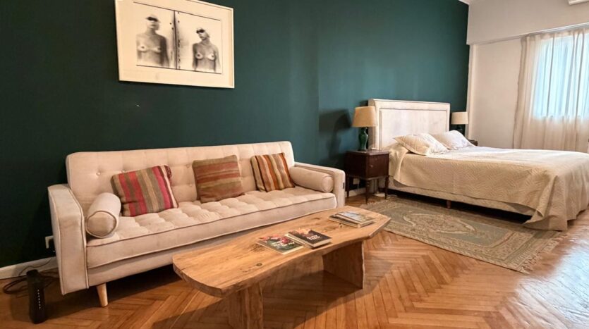The apartment is spacious enough to comfortably accommodate groups of up to 10 people. It’s located in a building with an elevator, external parking less than 100 meters away, a Citybus stop right outside, several laundromats within two blocks, and an exceptional culinary scene that includes bars like Dadá, La Florería (a world-renowned speakeasy), Tancat, Boca de Toro, and the historic Florida Garden. In addition to the bars and cafes of the city’s most exclusive hotels, such as Palacio Paz, Four Seasons, Palacio Duhau, and Casa Lucía.
