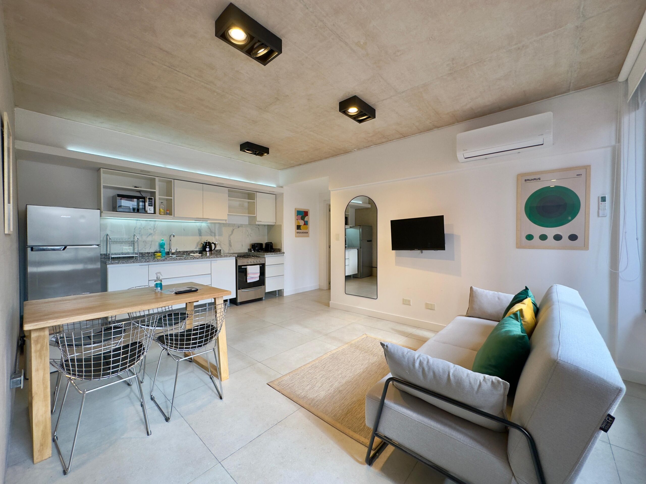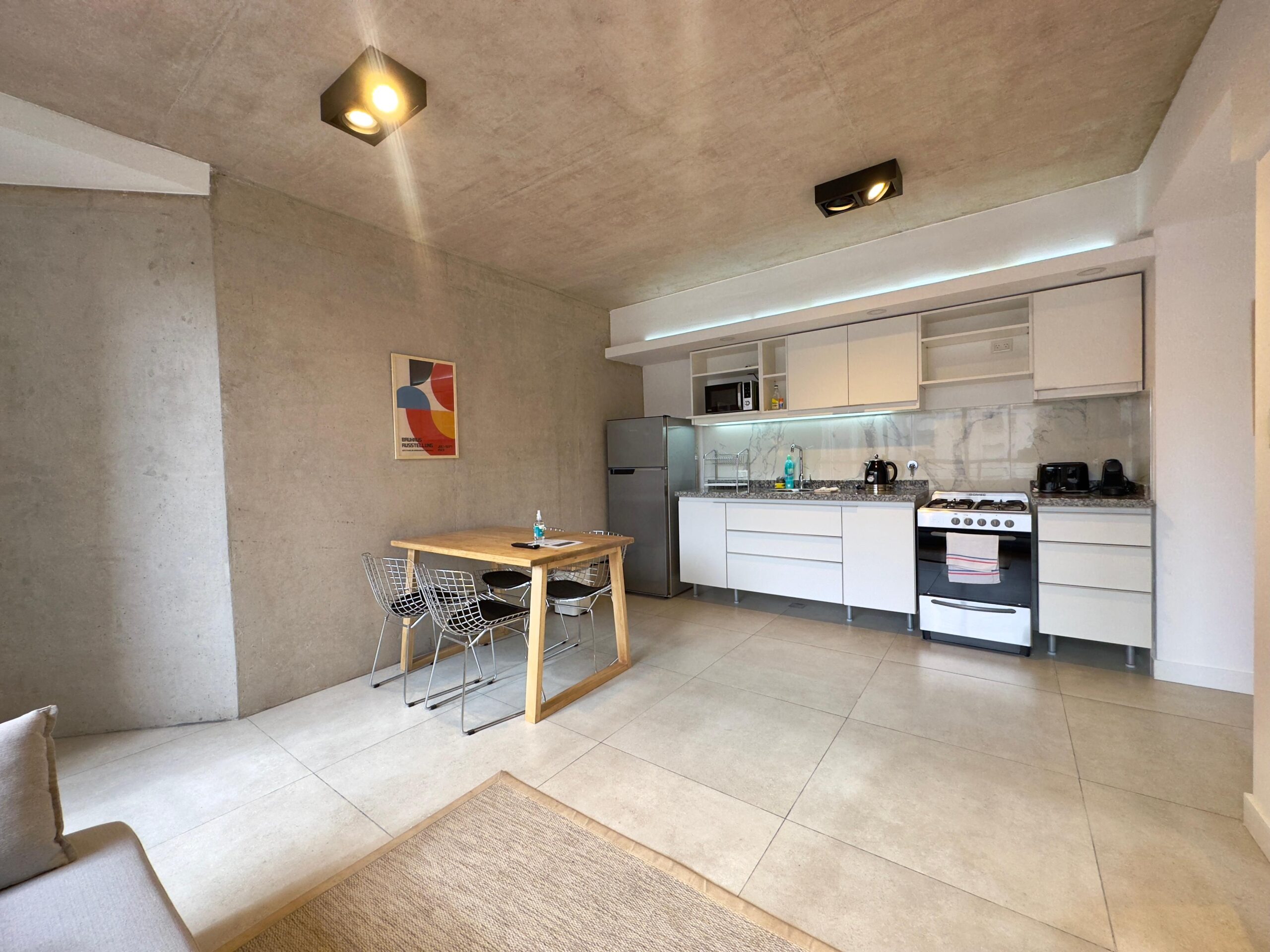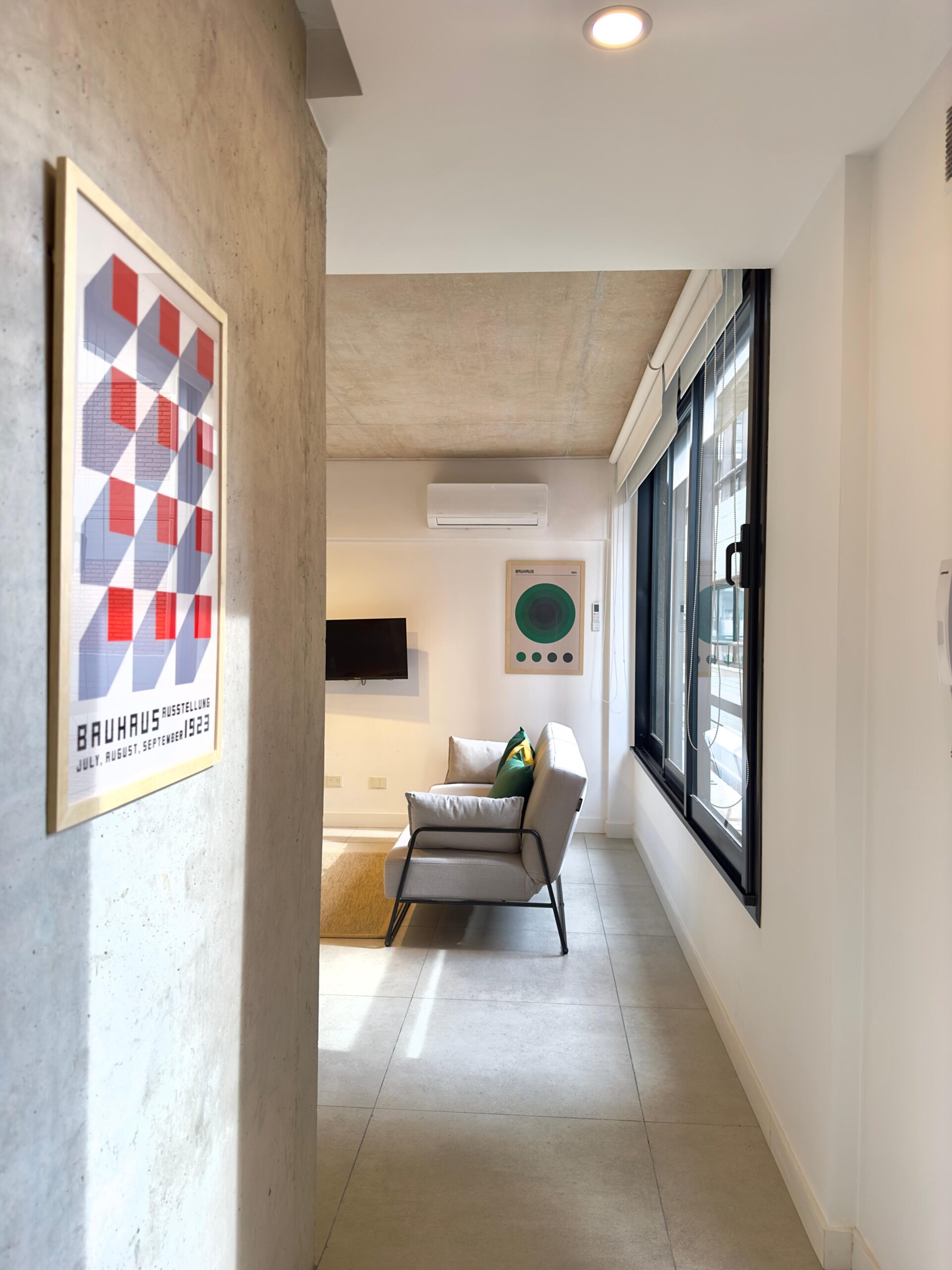 Modern industrial-style apartment with Bauhaus details, ideal for those seeking design, comfort, and functionality.