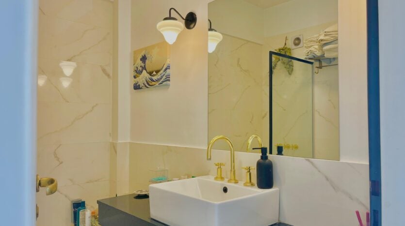 The apartment includes two full bathrooms, adding significant convenience for guests and residents.