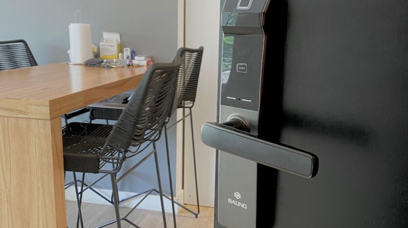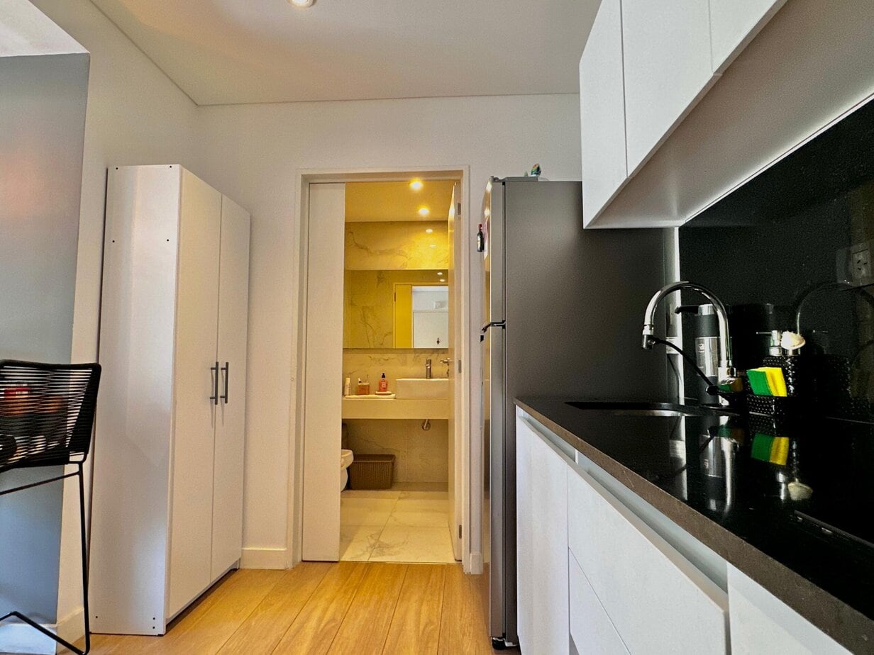 The building boasts high-end amenities: a swimming pool, a shared barbecue area, and a laundry room. It also offers a security totem at the entrance, providing enhanced access control and peace of mind for residents.