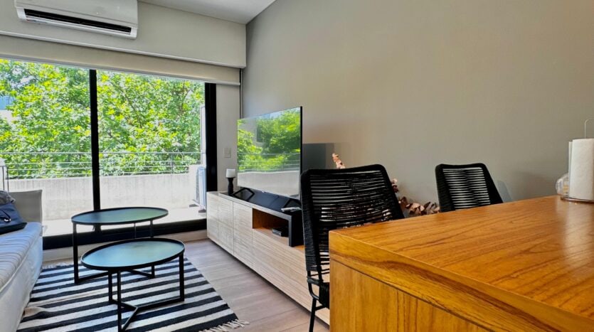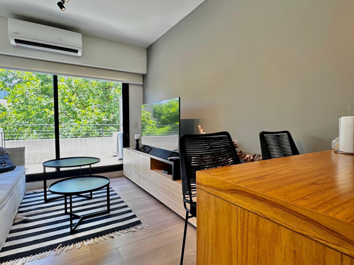 Excellent, fully furnished two-room apartment located on Guatemala Street in the renowned Palermo Hollywood neighborhood, an area distinguished by its diverse culinary scene, bars, cafes, film studios, and cultural spaces. A safe environment with a vibrant urban atmosphere and easy access to services and public transportation.