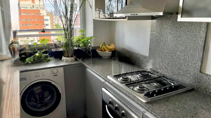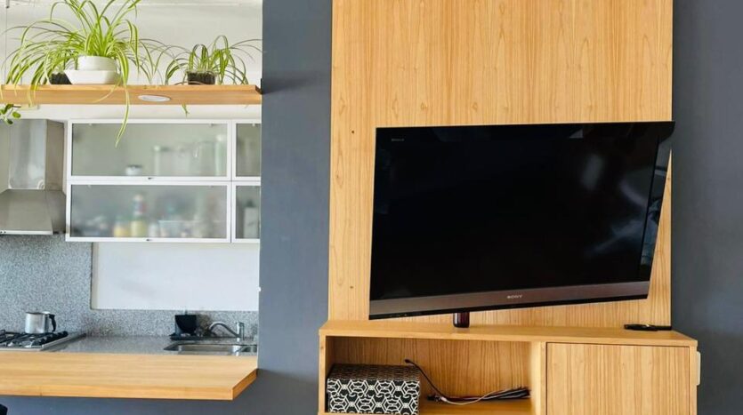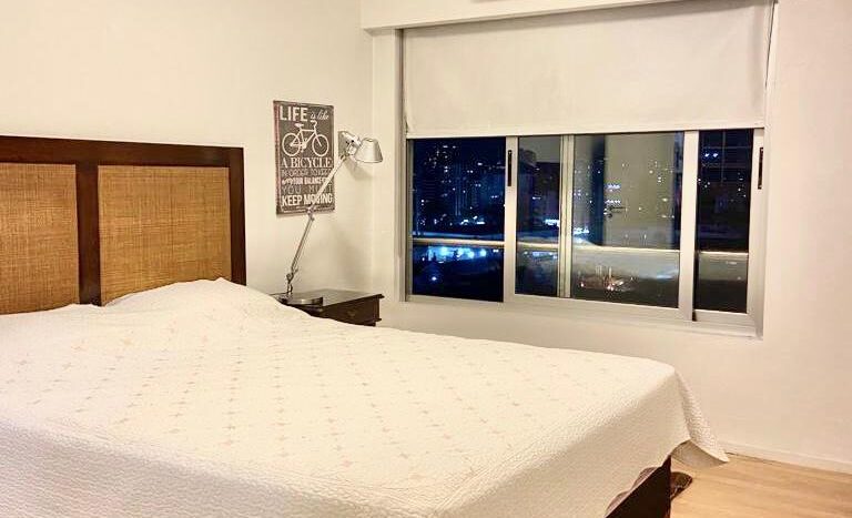 The living and dining area combines comfort and design, with natural light and access to a balcony offering panoramic city views —perfect for enjoying sunsets.