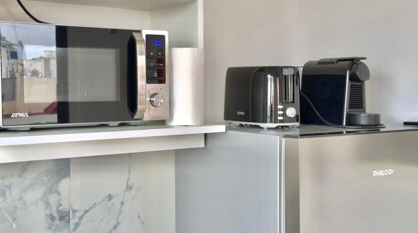 Located in a high-end building with a shared rooftop terrace, sun loungers, and free laundry facilities. Security and comfort are prioritized in every detail.