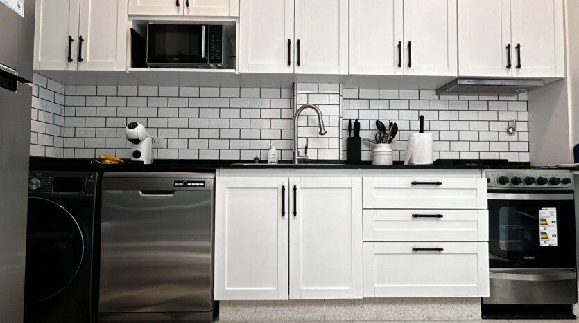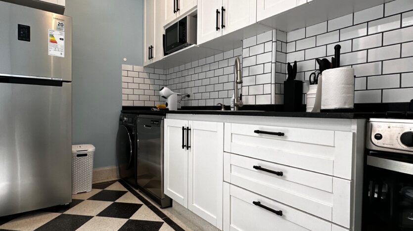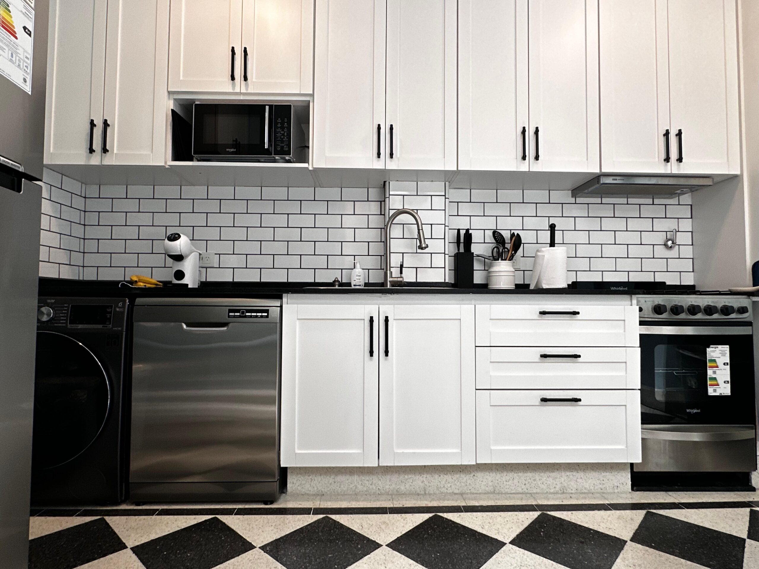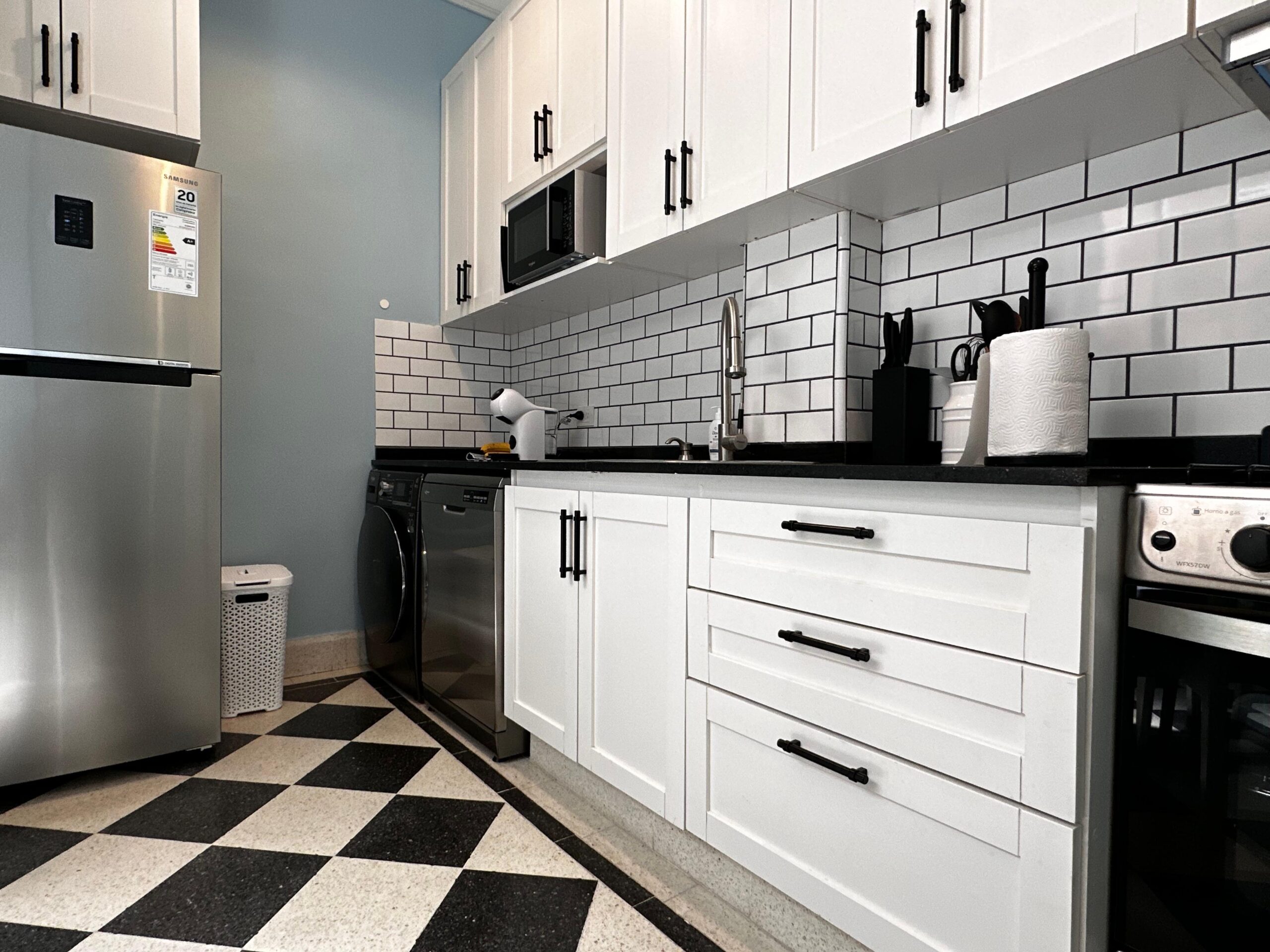 This apartment is fully furnished and equipped to ensure a worry-free and truly “at home” stay. Guests benefit from dedicated climate control with both air conditioning and heating in all rooms, a fully functional kitchen featuring a refrigerator, microwave, dishwasher, coffeemaker, and complete dishware, and three Smart TVs (including a Sony Frame). A key highlight is the exclusive private laundry setup, including an in-unit washer and dryer, eliminating the need for shared facilities. For added security and comfort, the unit also includes a safe box and ample storage space in nearly every room.