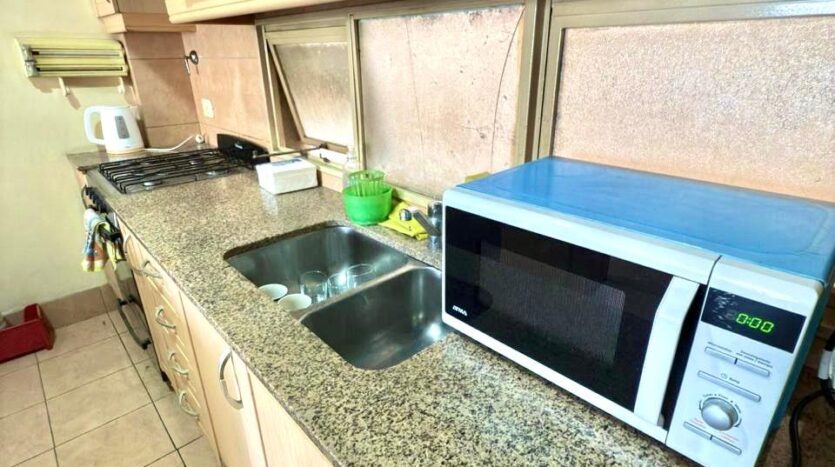 This bright and cozy unit features 2 bedrooms, a fully equipped kitchen, a comfortable dining area, a large bathroom, and hot & cold A/C. It offers 54 m² of indoor space plus an 8 m² balcony with large windows that bring in plenty of natural light.