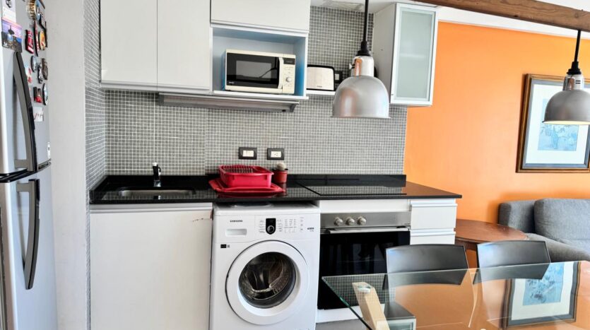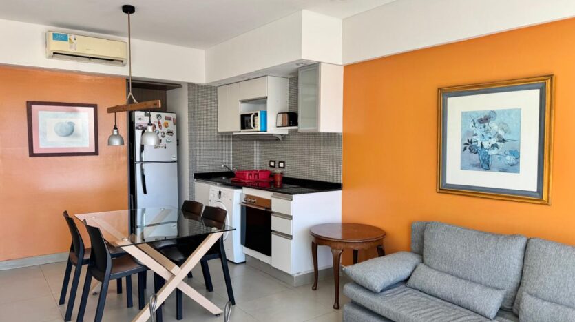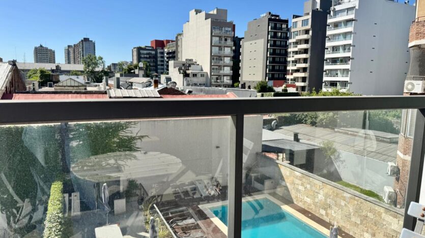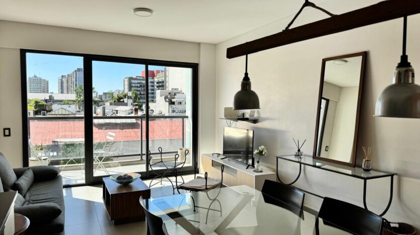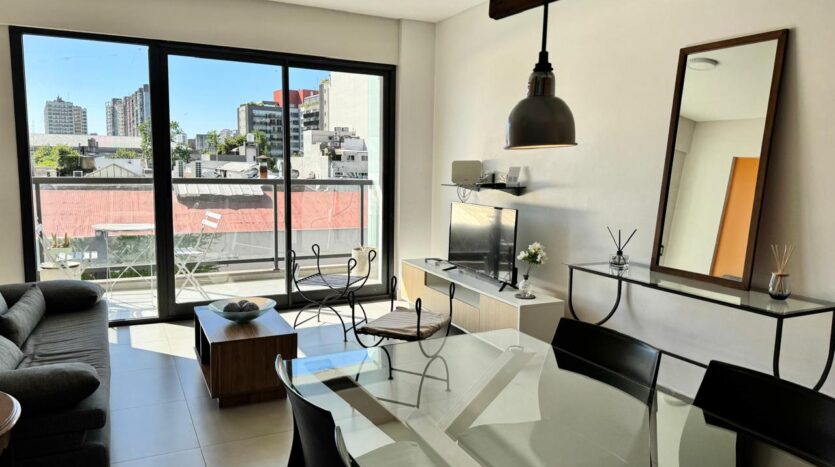 Located within the Audio Visual District of Palermo Hollywood. (Film studios, showrooms, galleries, aesthetics, coffe stores, bars, restaurants etc.) excellent location, with views and sunlights the whole day, integrated kitchen in the living room, the proper has electric kitchen with oven, black granite countertop , complete furniture, refrigerator space, central hot water, complete bathroom with bathtub and natural ventilation, split air conditioning F/C 3000Watts. installed.